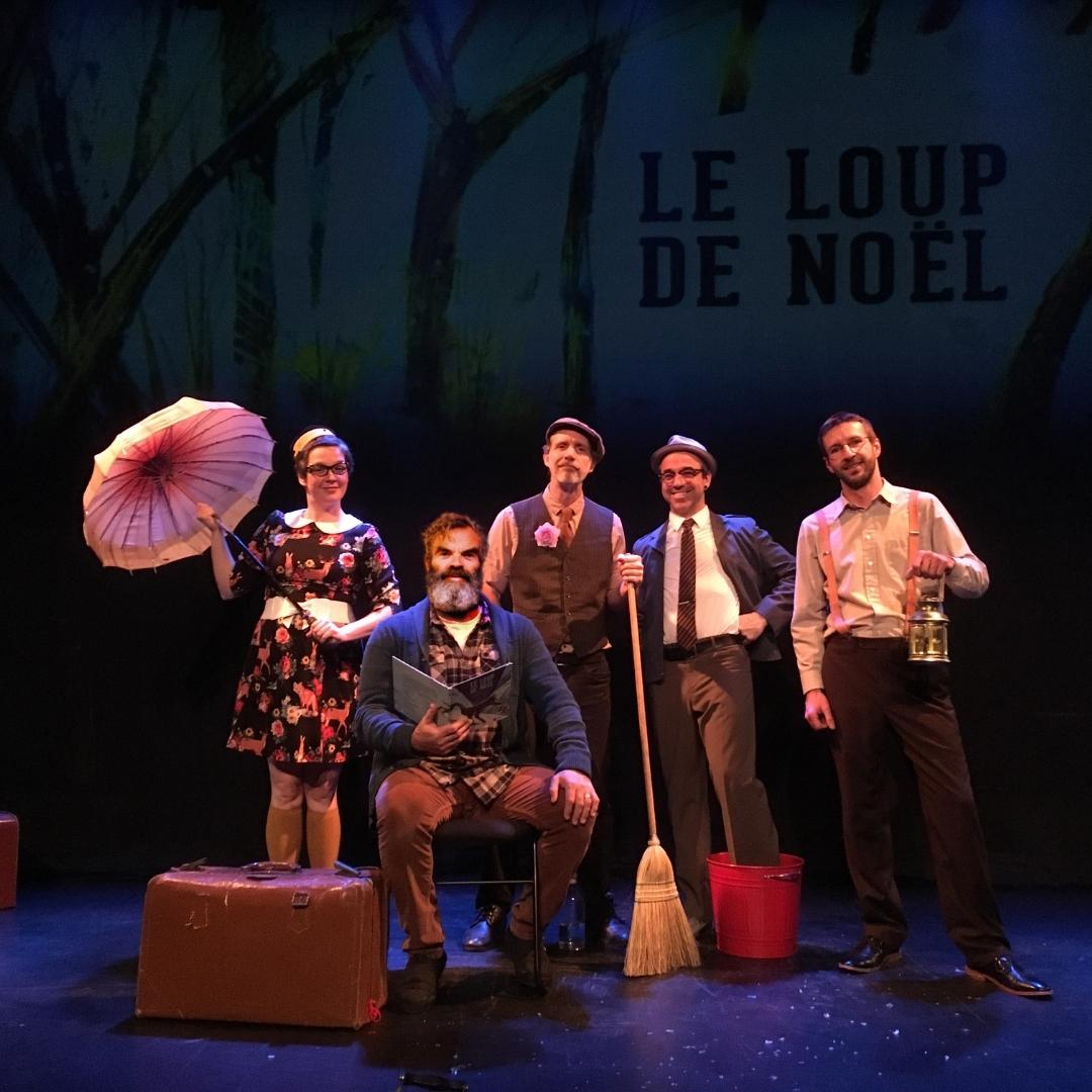 Sur scène, ce conte de Claude Aubry est raconté par Edgar Bori qui nous transporte dans un Québec d’antan où la messe de minuit et le réveillon étaient au cœur des célébrations. Projetées sur un tulle, les illustrations de Pierre Pratt s’animent et nous plongent dans la féérie des Noëls d’autrefois. S’ajoute également la musique du groupe Bon Débarras qui accompagne à merveille l’histoire avec ses reels, ses turlutes et ses chansons. Le tout culmine en un réveillon festif qui fera chanter et danser petits et grands !